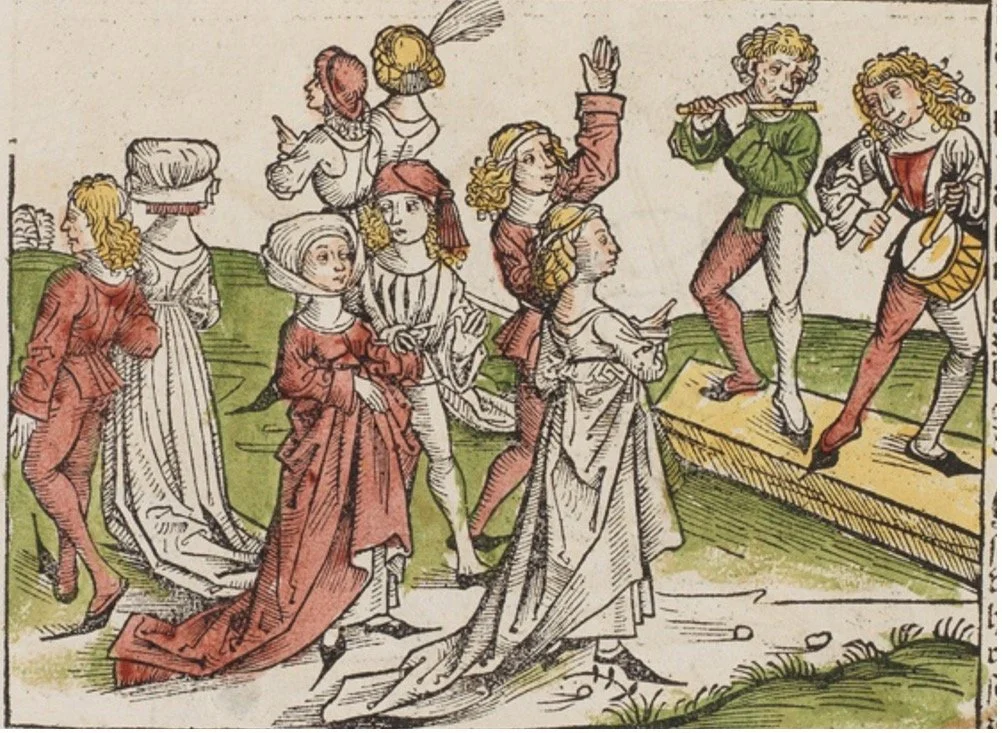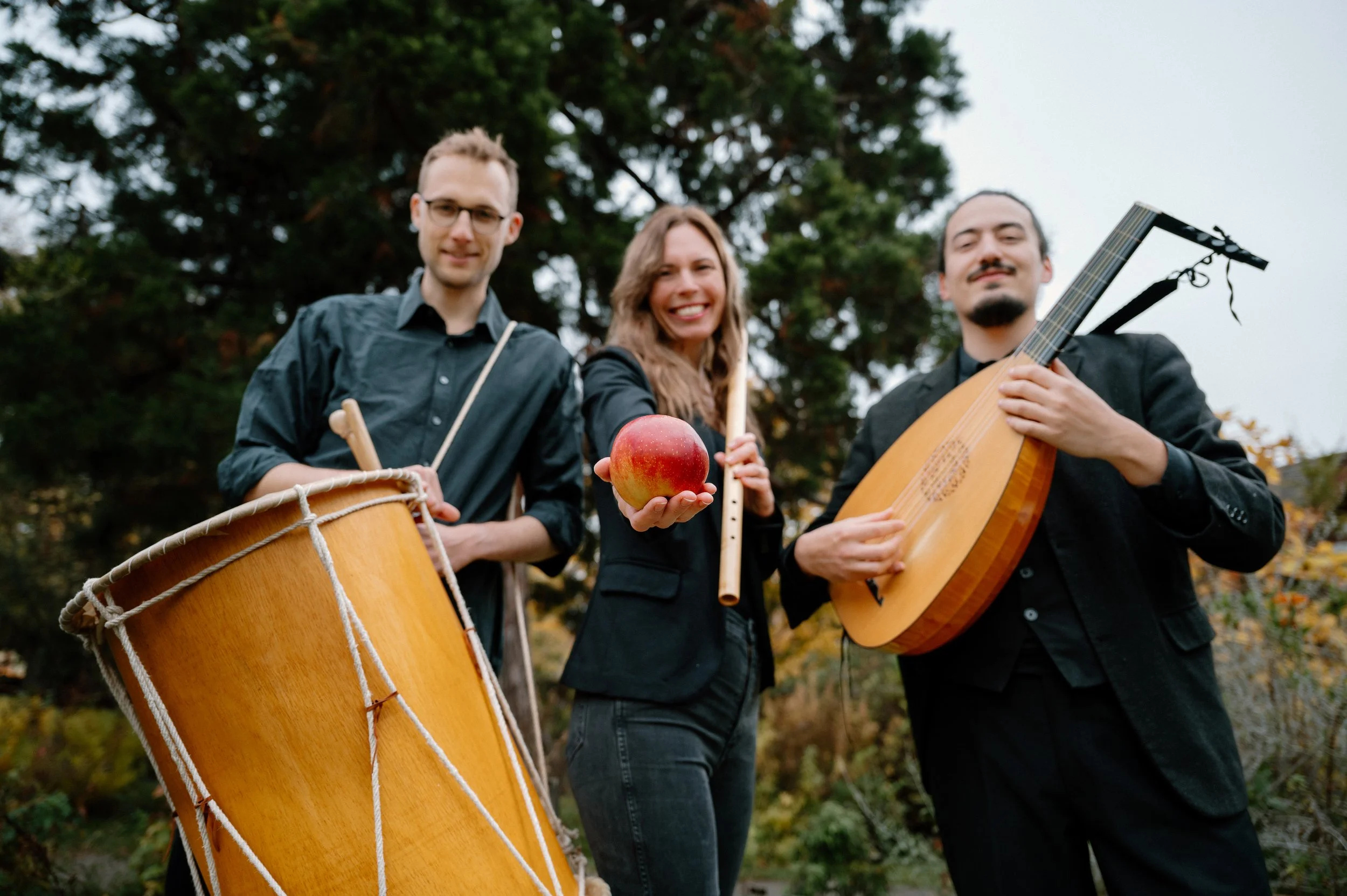 The ensemble began as a research exploration of functional music (including military, dance, and banquet music) provided by the historical flute and drum, such as the military duo shown in the Bern city chronicles of 1470 and the music of Emperor Maximilian’s Landsknechte. Holly Scarborough has presented lecture-recitals at different universities with drummer Philipp Wingeier, highlighting this once-prevalent instrumental combination that is still locally evident in the Basel Fasnacht tradition. Driving this academic research is the focus on recreating a repertoire to perform.